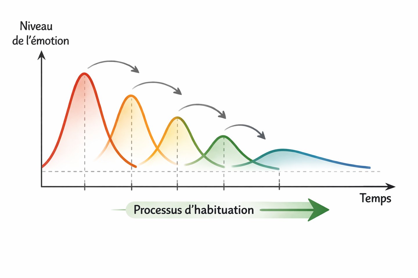 Plus on reste dans la situation sans mettre en place d’évitement, plus l’émotion perd en intensité.