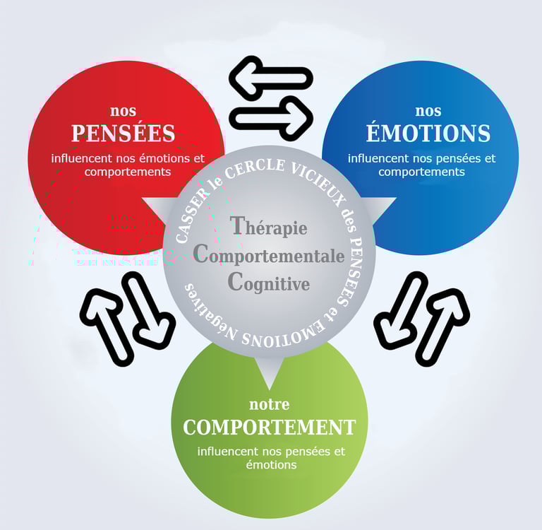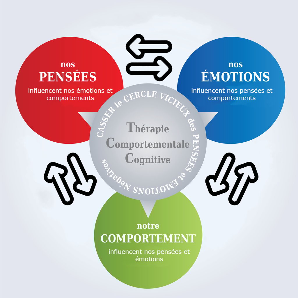 Un postulat fondamental : pensées, émotions et comportements sont étroitement liées et exercent une influence mutuelle sur le bien-être mental.